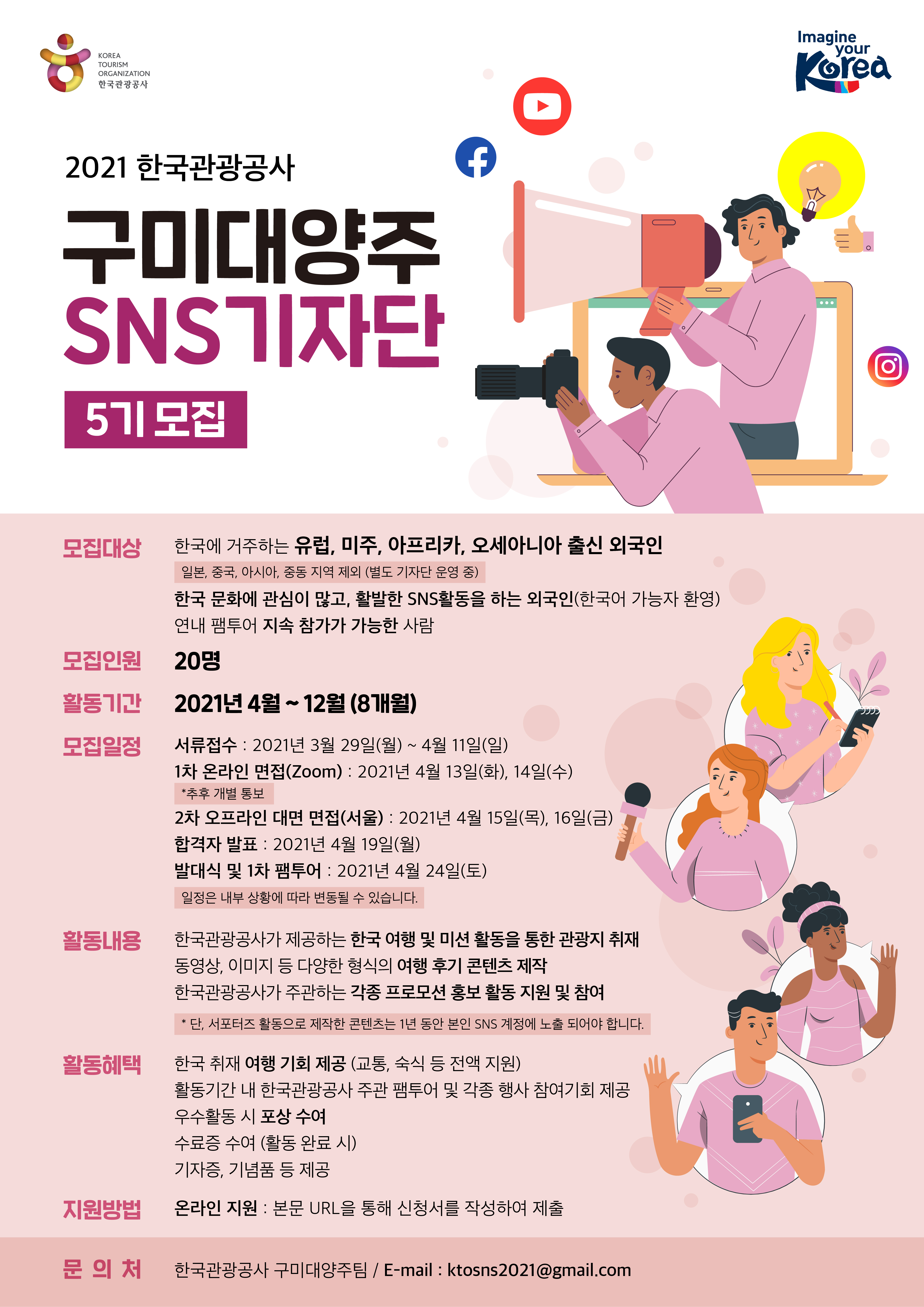[홍보] 한국관광공사(KTO 2021 한국관광공사 구미대양주 SNS 기자단 모집 / SNS Supporters recruitment